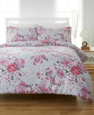 This boutique collection rose patterned duvet cover and pillowcase set has an elegant print in shades of pink/lilac on a pale grey backround, giving a beautiful “painted effect”. A sophisticated bedding range for a fresh, classic look.