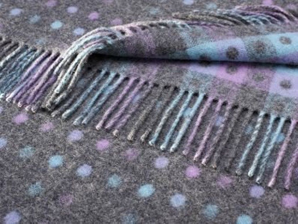 A beautiful 100% pure merino lambswool “Bronte” thor of the finest quality made in Yorkshire by Moon and sons – operating since 1837. This merino lambswool pastel grey spot throw measures 140 x 185cm