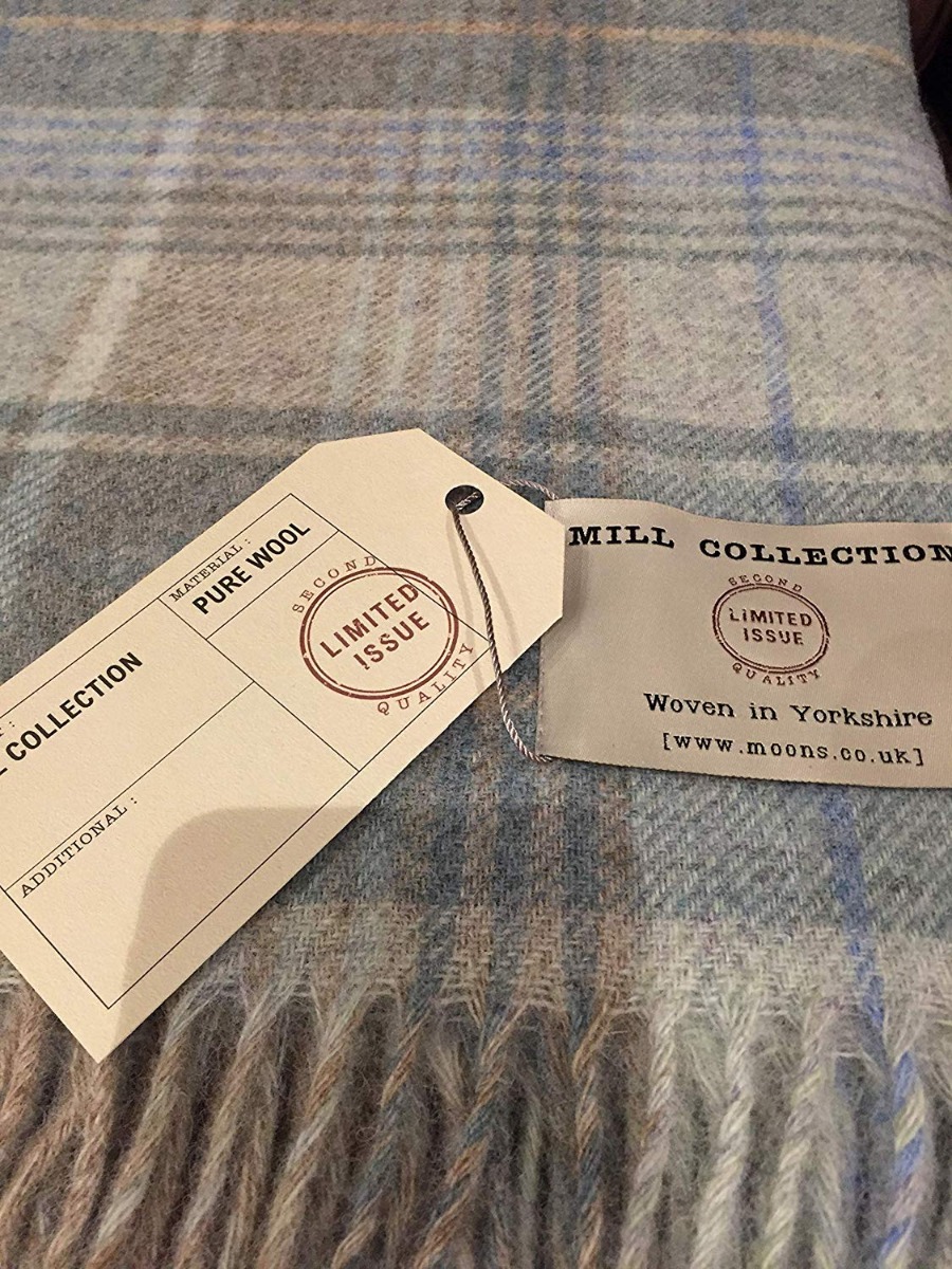 Bronte by Moon 100% Wool Throw – Factory Slight Seconds Mill Collection Green/Blue Muted Check