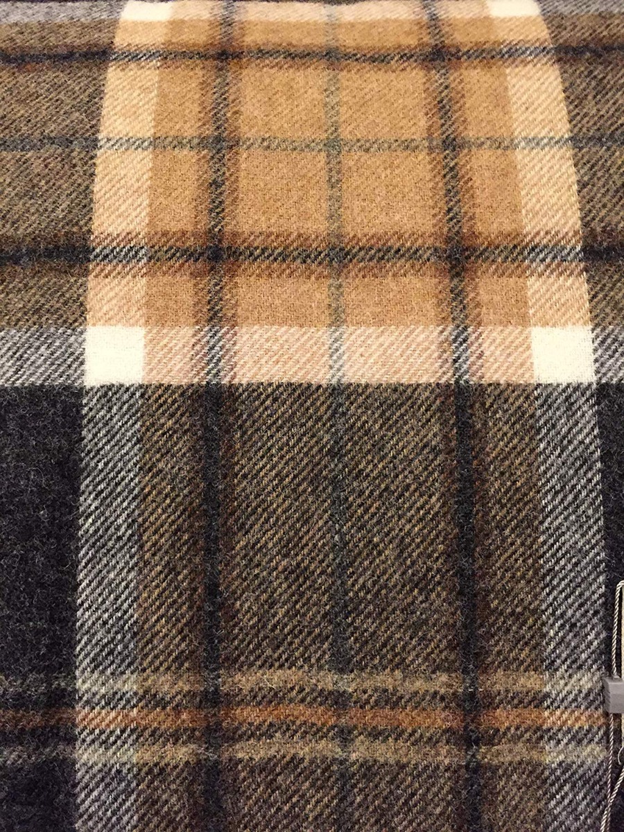 • 100% Wool Bronte Bed/Sofa Throw Blanket - Grey/Tan Multi-Check