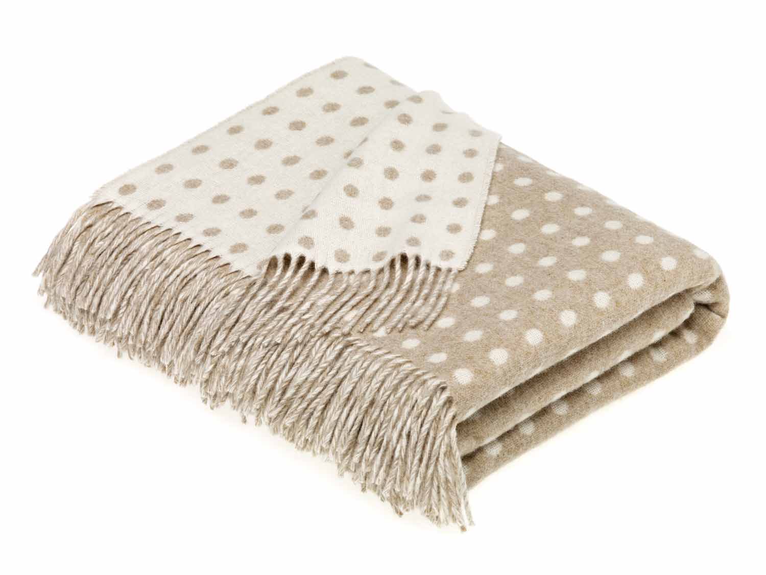 A stylish design That has stood the test of time. A beutifully soft Merino wool throw in a contemporary Natural spot design.