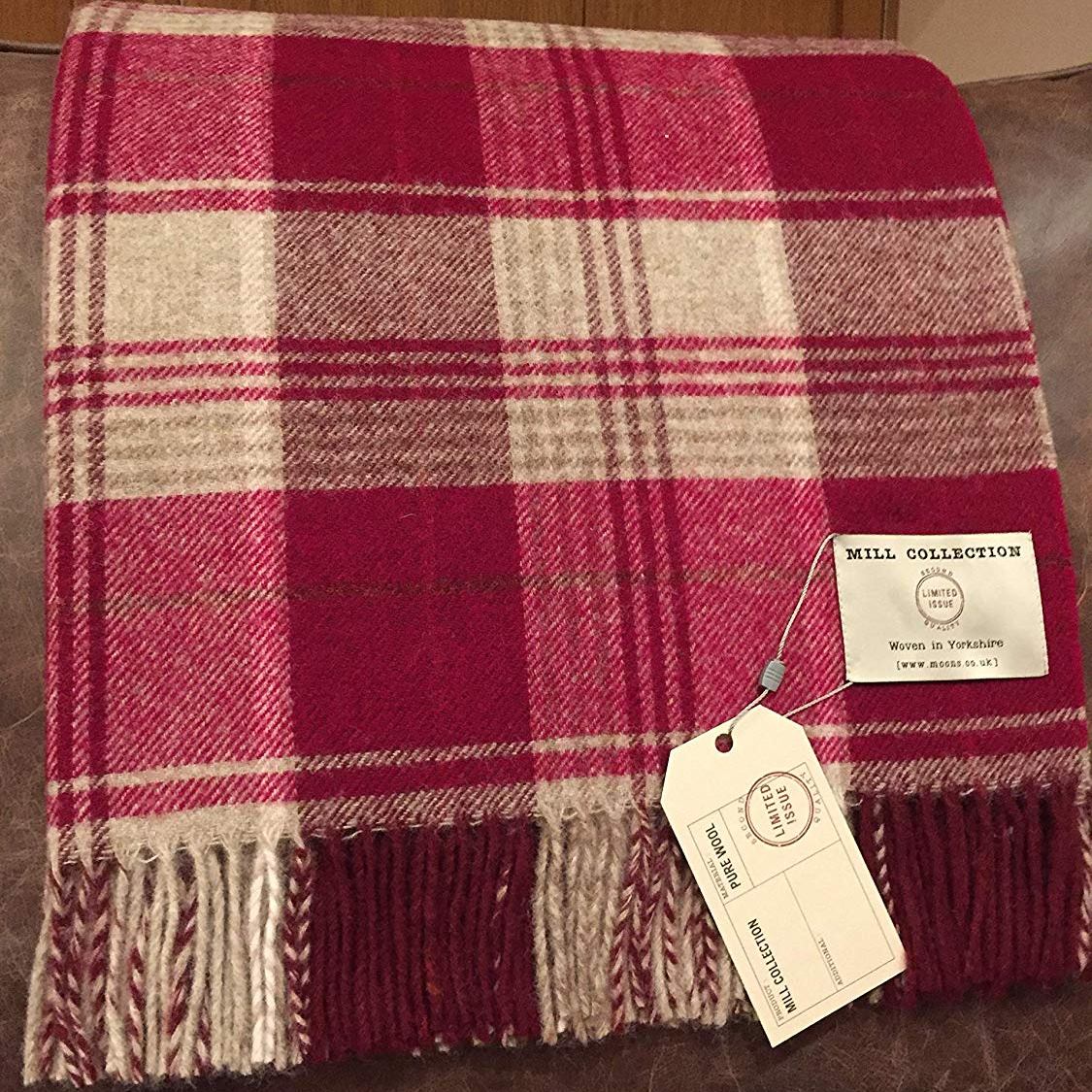 Bronte by Moon Red Multi Check 100% Wool Throw – Factory Slight Seconds Mill Collection