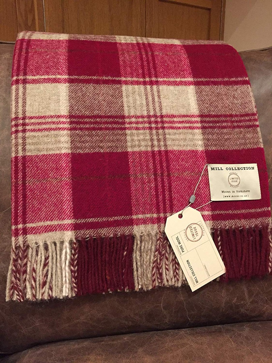• 100% wool Bronte Bed/Sofa Throw Blanket - Red Multi-Check