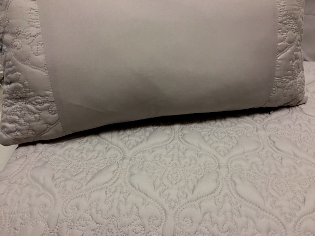Sold as a complete set for a luxury home from home look in your caravan. This lovely silver grey bedding range with stitched detail comprises a shaped duvet cover & pillowcase set, quilted throw and a filled boudoir cushion The duvet cover and pillowcases have a stitched panel with pintuck trim on a plain background, The quilted throw has an all over stitch pattern with plain edge trim and is fully reversible. The boudoir cushion has a stitched panel trim to each end with a plain reverse.