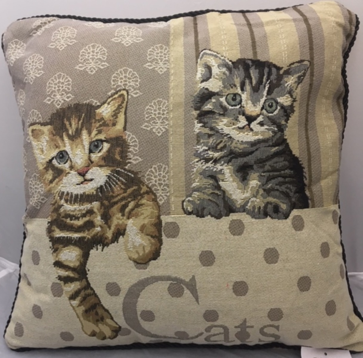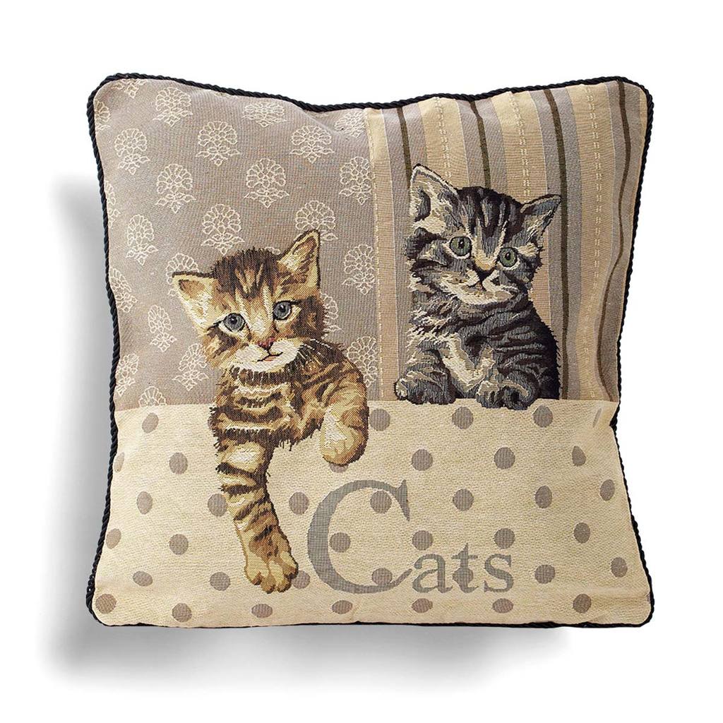 Cats Tapestry Cushion Cover Zipped Rope Piping Trim 18″ 45cm