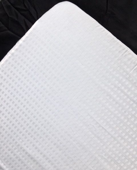 Cot size luxury white polycotton jacquard squares fully elasticated fitted sheet. 400 thread count superior 50% Cotton 50% Polyester made in UK. With a 400 thread count it is smooth, comfortable, and durable, and requires minimal ironing due to the easycare finish.