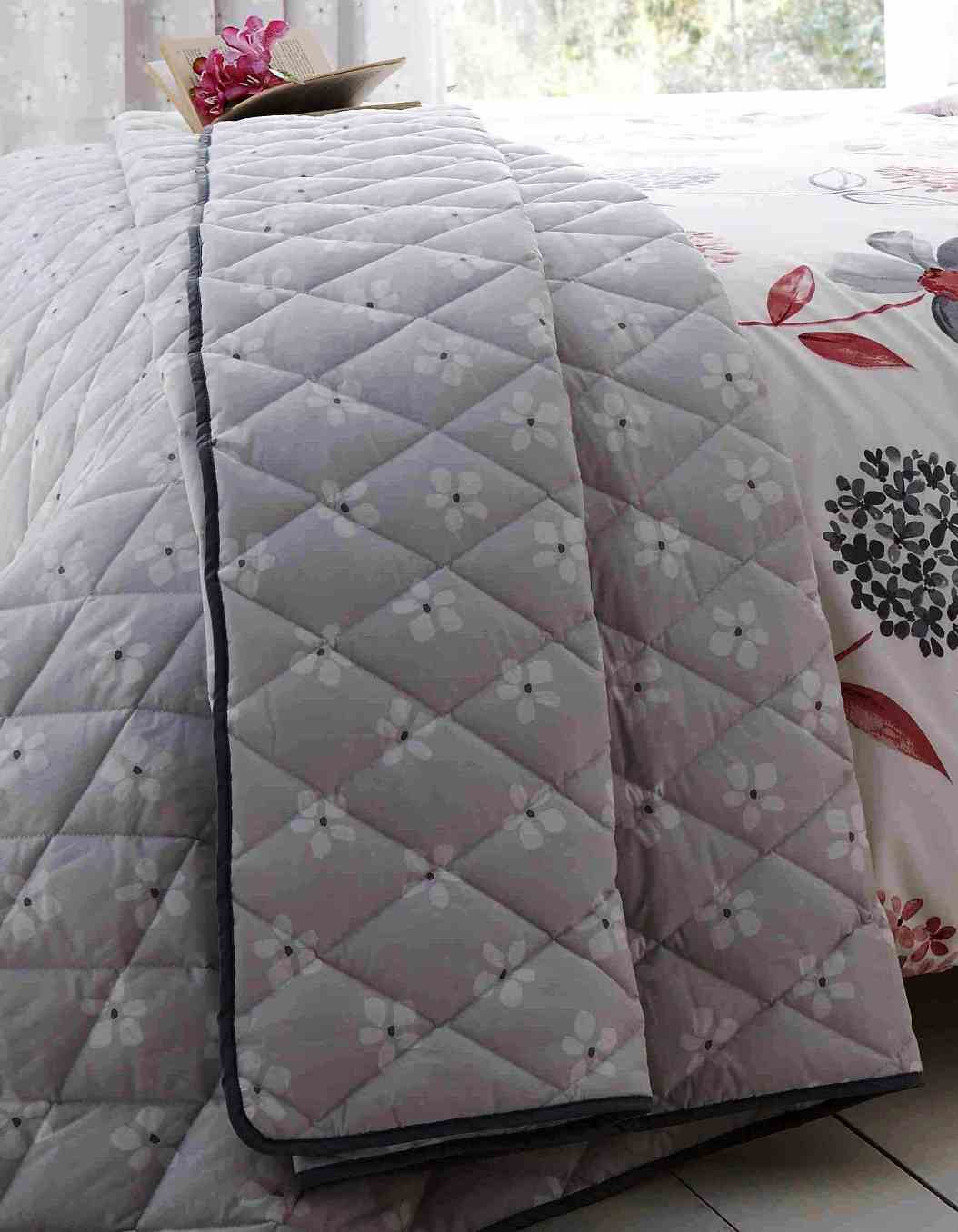 This lovely bouquet printed bedding range comprises a duvet cover set, bedspread, boudoir cushion and square cushion cover for the complete look. The 200 thread count fabric makes it comfortable as well as easy to launder. The duvet set is reversible to a pink daisy print giving you two different looks. The zipped filled boudoir cushion is also pink daisy print and the cushion cover has a floral panel both sides and a zipped cover.The bedspread is a co-ordinating grey daisy print
