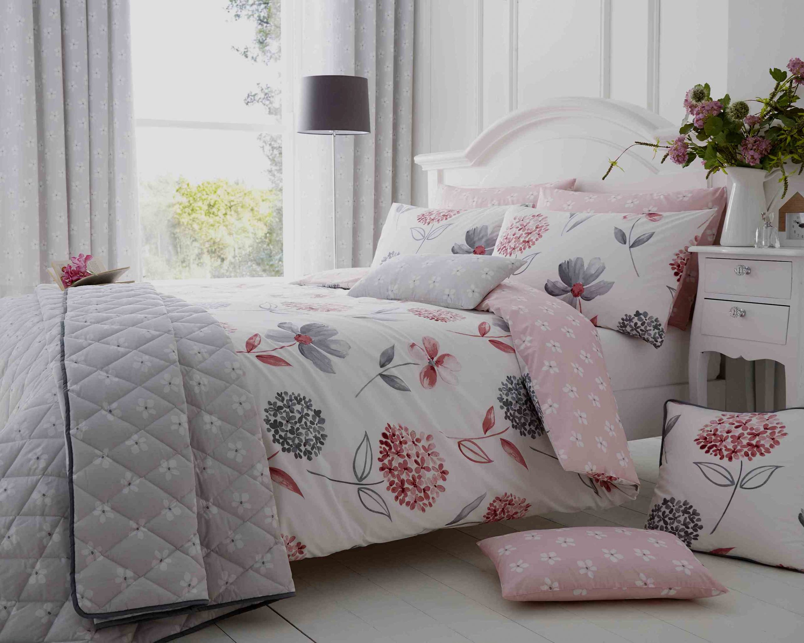 Cotton Rich Caroline White/Pink/Grey Duvet Cover Set, Cushions and Bedspread