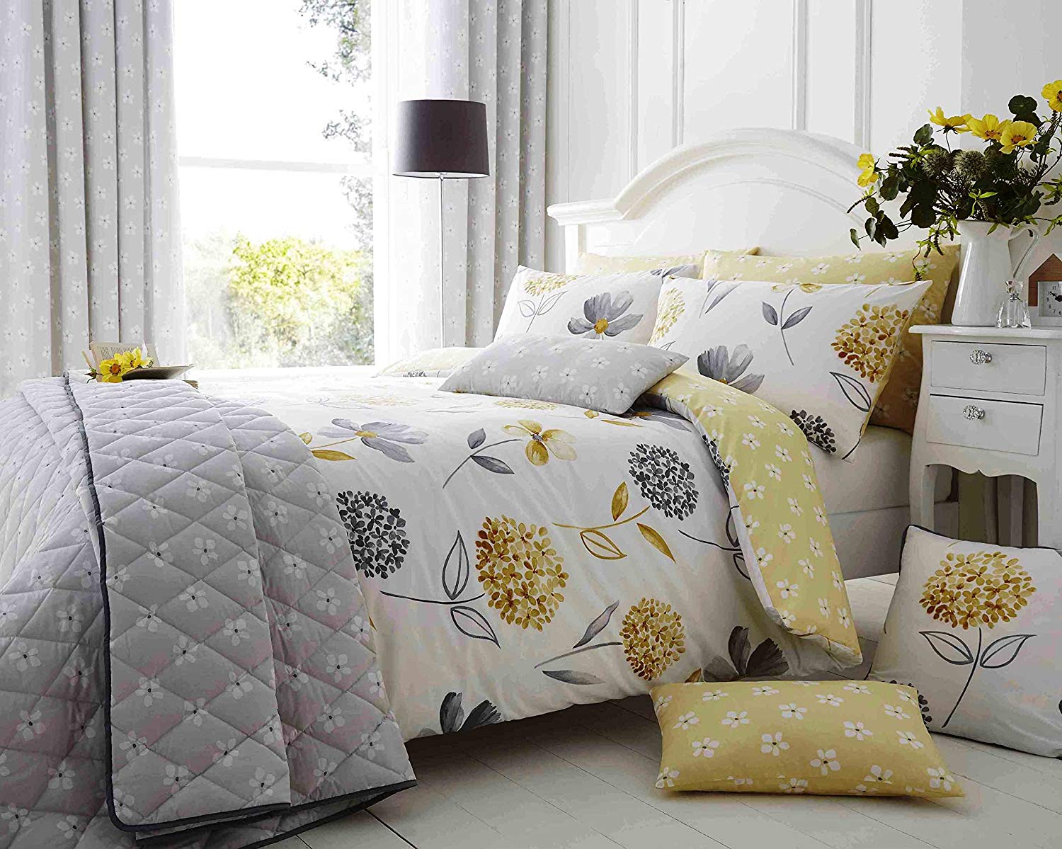 Cotton Rich Caroline White/Yellow/Grey Duvet Cover Set, Cushions and Bedspread (Items are sold individually and not as a set.)