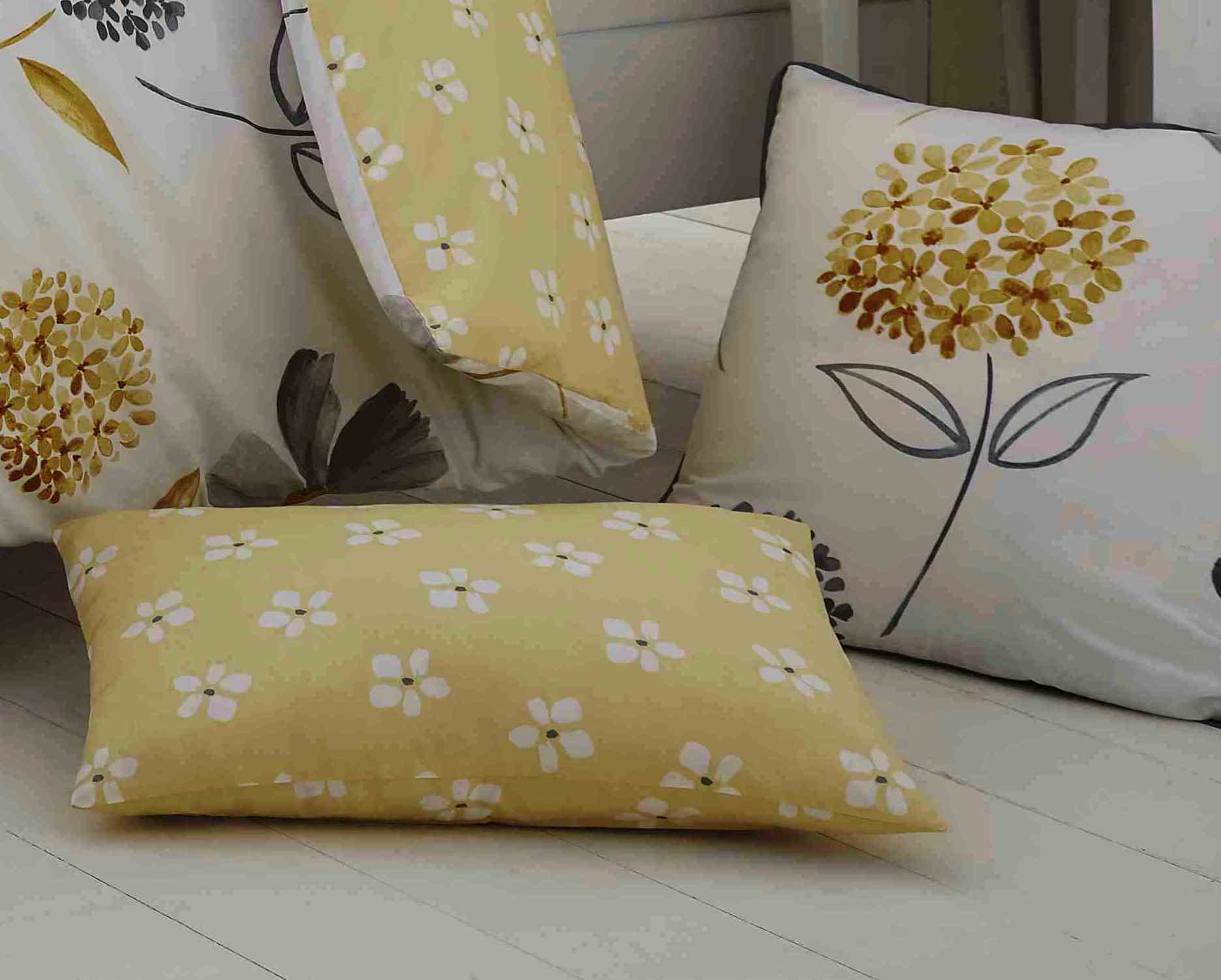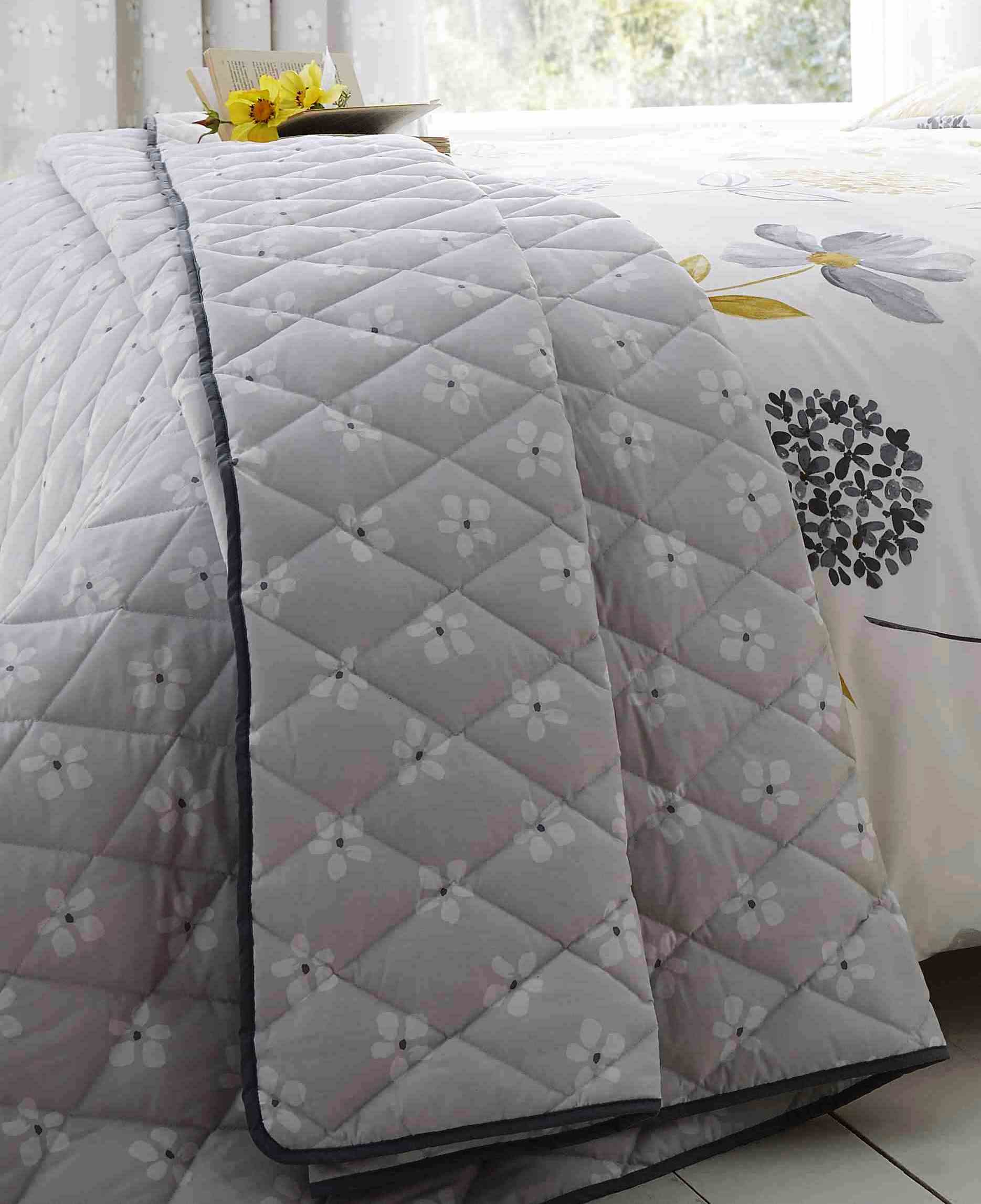 This lovely printed bedding range comprises a duvet cover set, bedspread, boudoir cushion and square cushion cover for the complete look. The 200 thread count fabric makes it comfortable as well as easy to launder. The duvet set is reversible to a yellow daisy print giving you two different looks. The zipped filled boudoir cushion is also yellow daisy print and the cushion cover has a floral panel both sides and a zipped cover.The bedspread is a co-ordinating grey daisy print. Items are sold individually and not as a set.