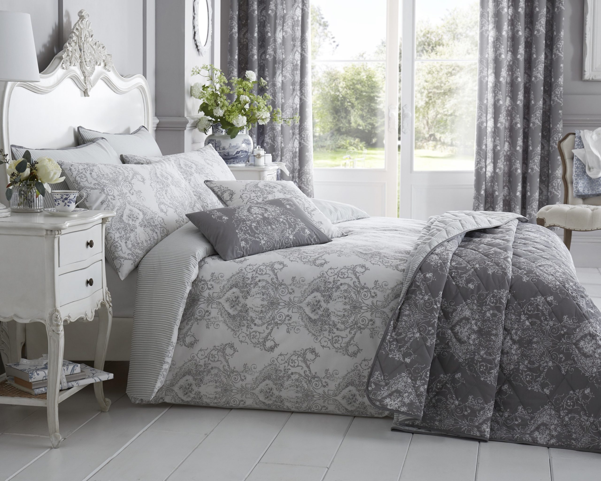 This lovely printed bedding is perfect for everyday use, the durable 200 thread count cotton rich fabric makes it comfortable as well as easy to launder and minimal iron. The classic Toile design reverses to a stripped pattern.