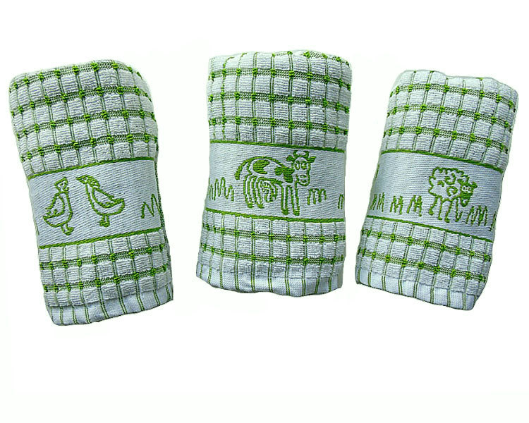 Great quality kitchen tea towels in a range of colours to suit any d‚à ö©cor. 100% Cotton Made in Egypt. Each pack contains 1 x Ducks, 1 x Sheep 1 x Cows in a single colour