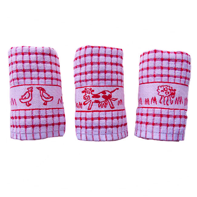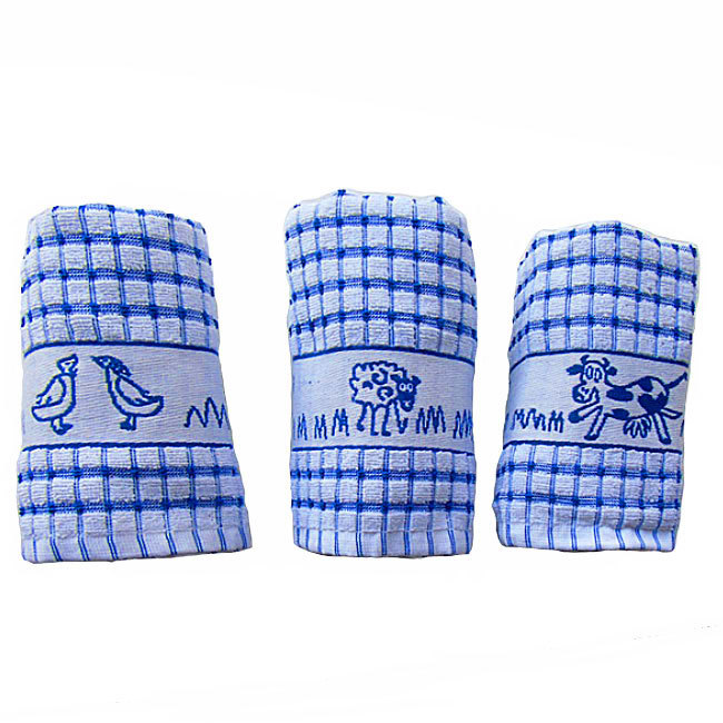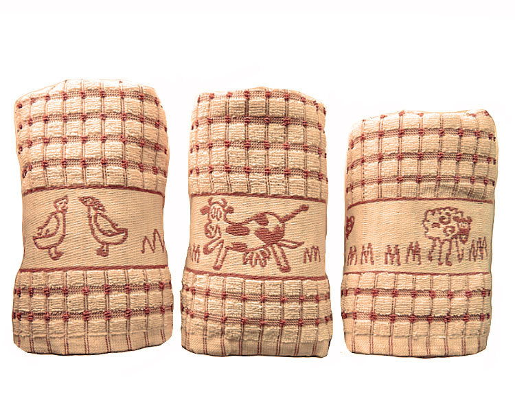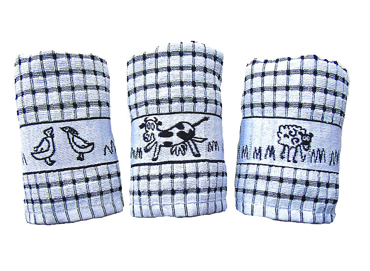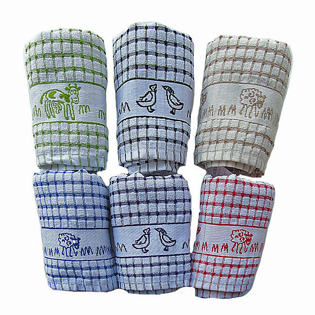 Great quality kitchen tea towels in a range of colours to suit any d‚à ö¬©cor. 100% Cotton Made in Egypt. Each pack contains 1 x Ducks, 1 x Sheep 1 x Cows in a single colour