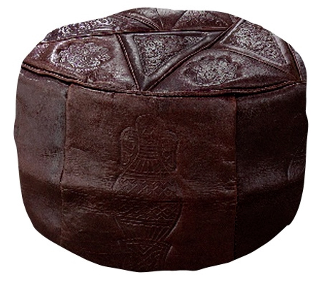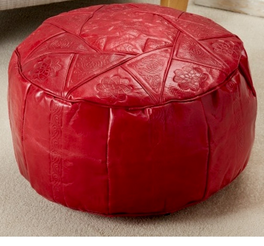 Our Moroccan style genuine leather pouffe/footrest/occasional seat is available in 2 colours to complement any decor. Embossed with traditional patterns. Conforms to British BS standards.