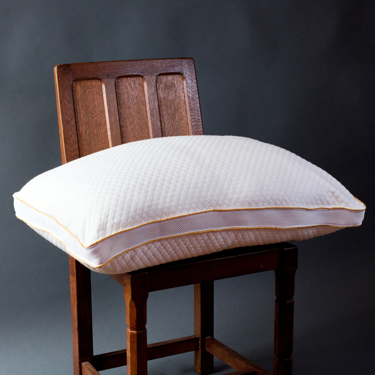 This pillow has a soft knitted jacquard cover with a unique breathable gusset to enable air to circulate and will adapt to any sleeping position. Twin needle double gold satin piped finish and generously filled with 100% spiral hollowfibre.