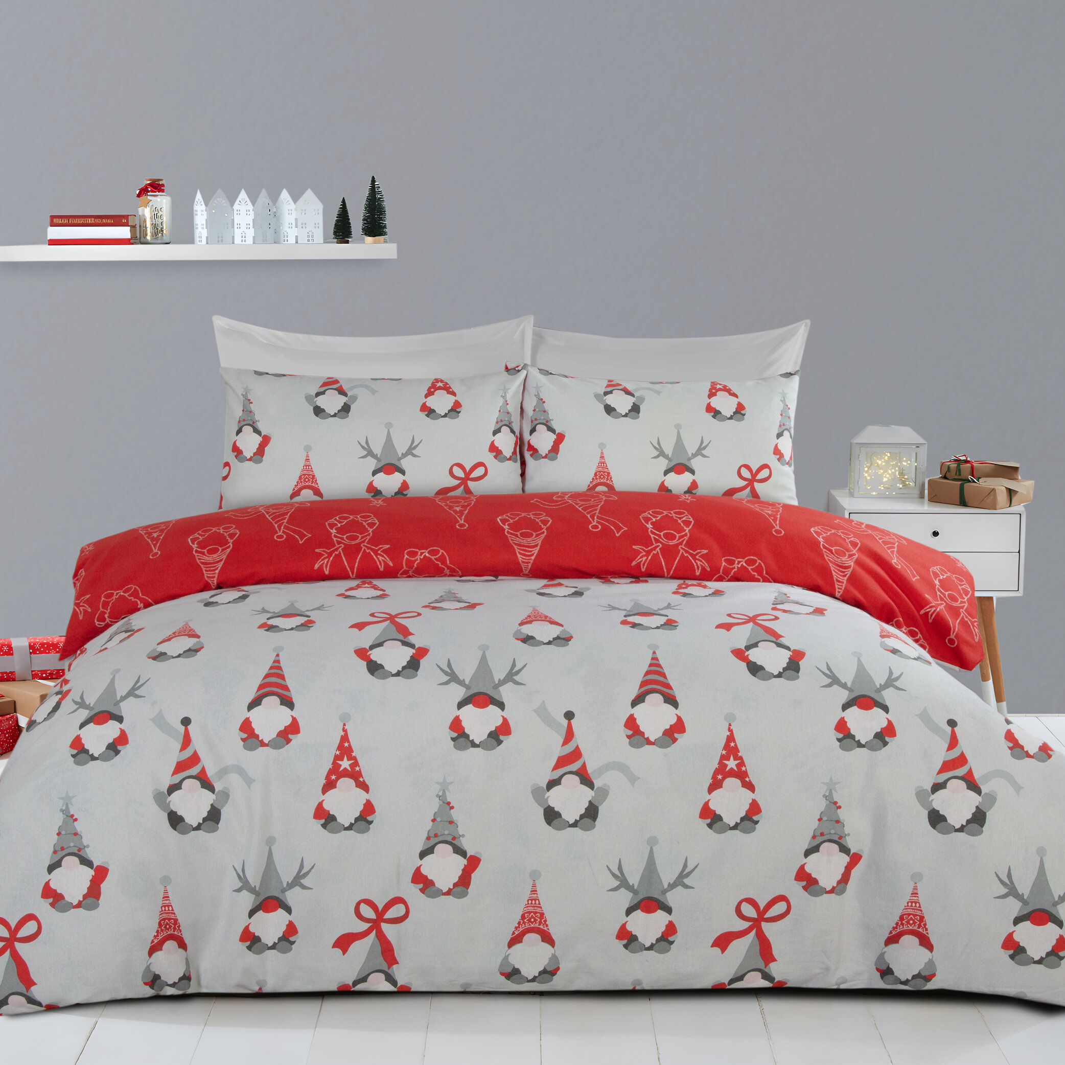 Bring a festive feel to your bedroom with this fun Gonks design. Made from soft and cosy brushed polycotton, this duvet set provides warmth and comfort, perfect for snuggling up on chilly nights.