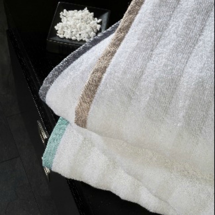 This luxury 600gsm towel range has a premuim quality super soft absorbent finish with a self stripe pattern and stylish narrow linen border trim in Natural to complement your bathroom.