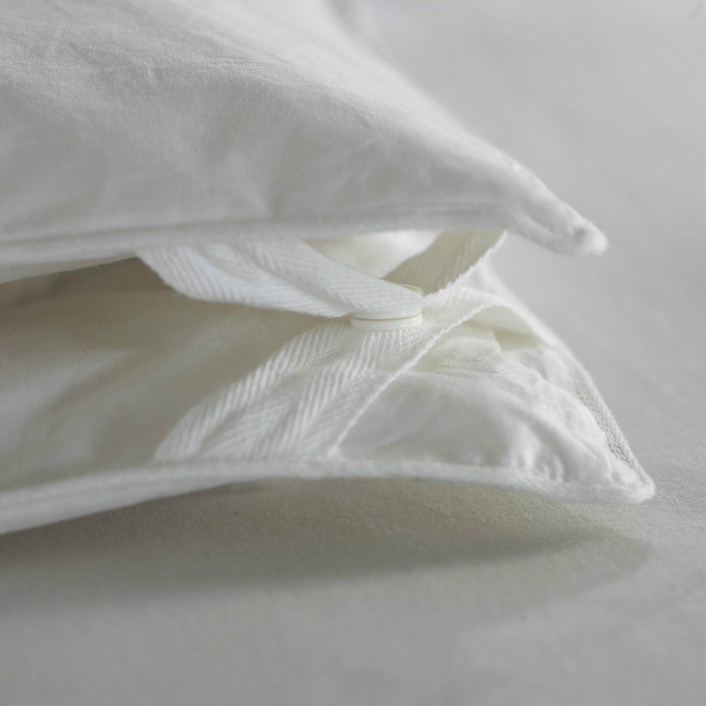 A blend of naturally hypoallergenic Goose Down (70%) and Goose Feather (30%) are steam-cleaned and sterilised before being tightly packed into a 100% down proof pure cotton casing. Each indivdual cassette stitched pocket is evenly filled to avoid cold spots and then finished with a double stitched and piped edge. This mix of Goose Down offers great value and being a touch heavier than pure down but still much lighter than a feather and down it provides a wonderfully soft and cosy feel. The combination of a 9 tog and 4.5 tog clip together for ultimate warmth in winter whilst on their own the 4.5 tog is ideal for the warmer summer months and the 9 tog perfect for spring and autumn. All seasons – perfect for year round comfort.