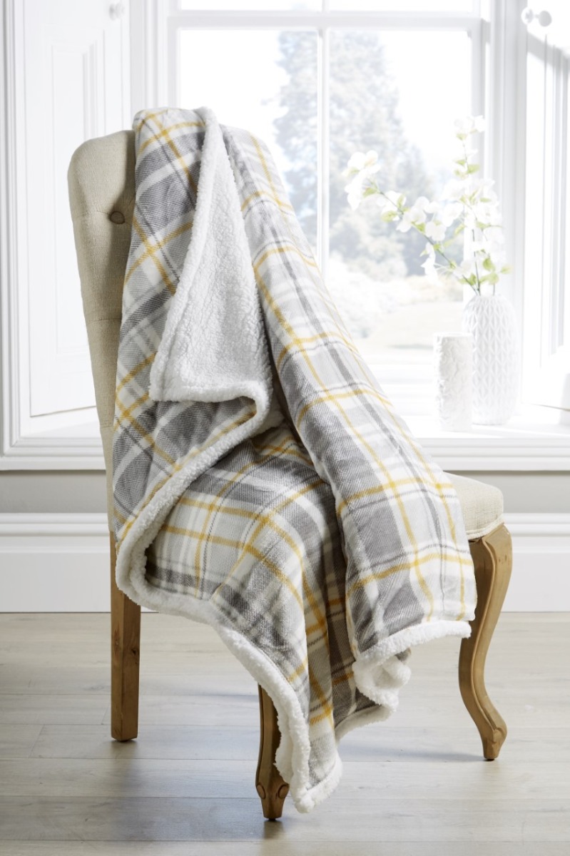 This tartan checked plush fleece throw has a soft and fluffy plain white sherpa fleece reverse. It will make a welcoming extra blanket on the bed on cold nights or a warm wrap to snuggle on the sofa when reading or watching tv. Ideal as a picnic blanket too.