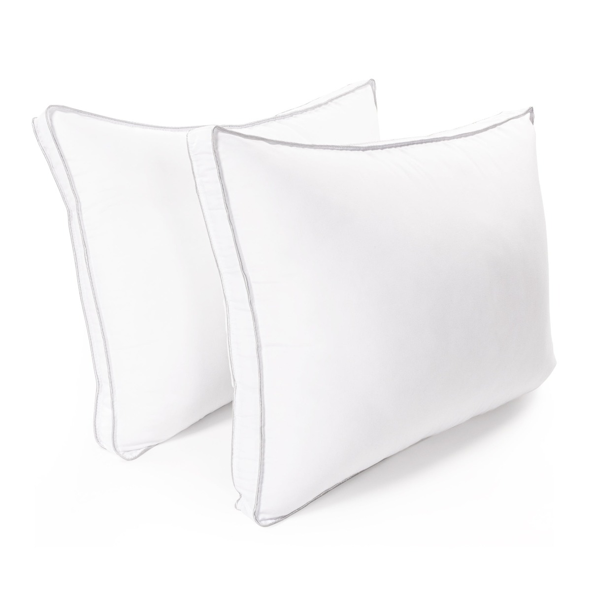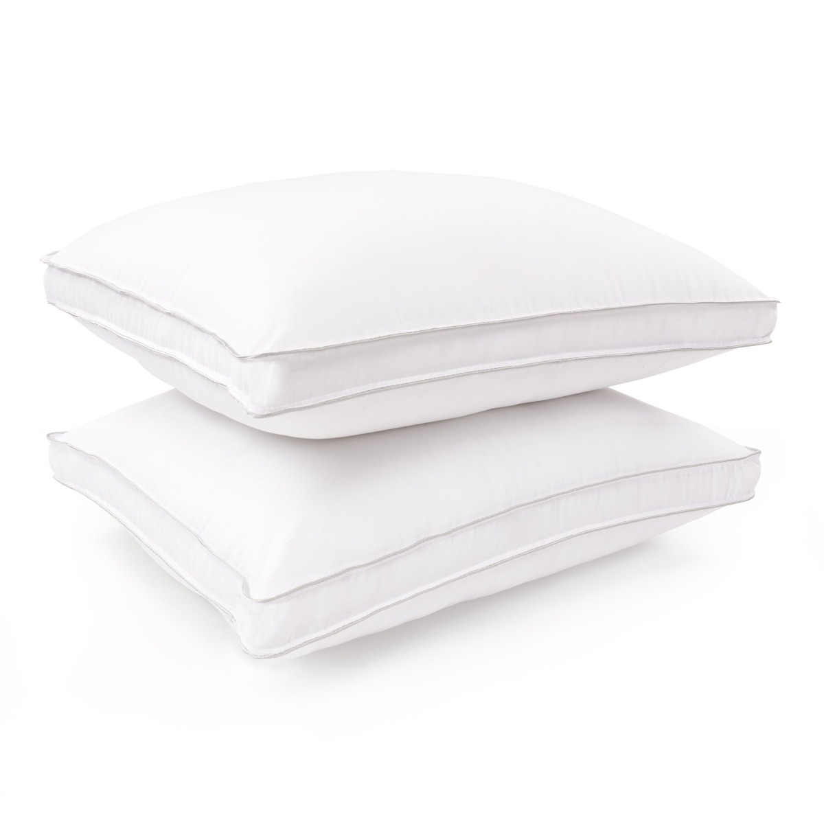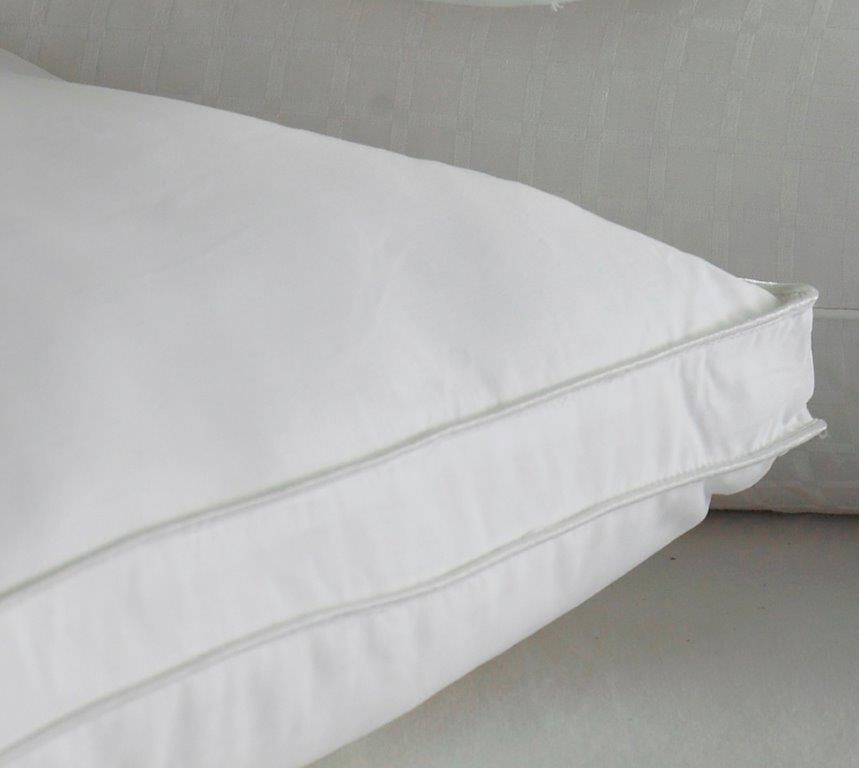 Luxury 300 thread count cover with 3cm side wall gusset for a fuller pillow as often found in top class hotels. Twin needle double piped finish and generously filled with 100% soft hollowfibre. Hypo-allergenic and dust mite proof casing. Size 48cm x 75cm with a 3cm deep gusset.