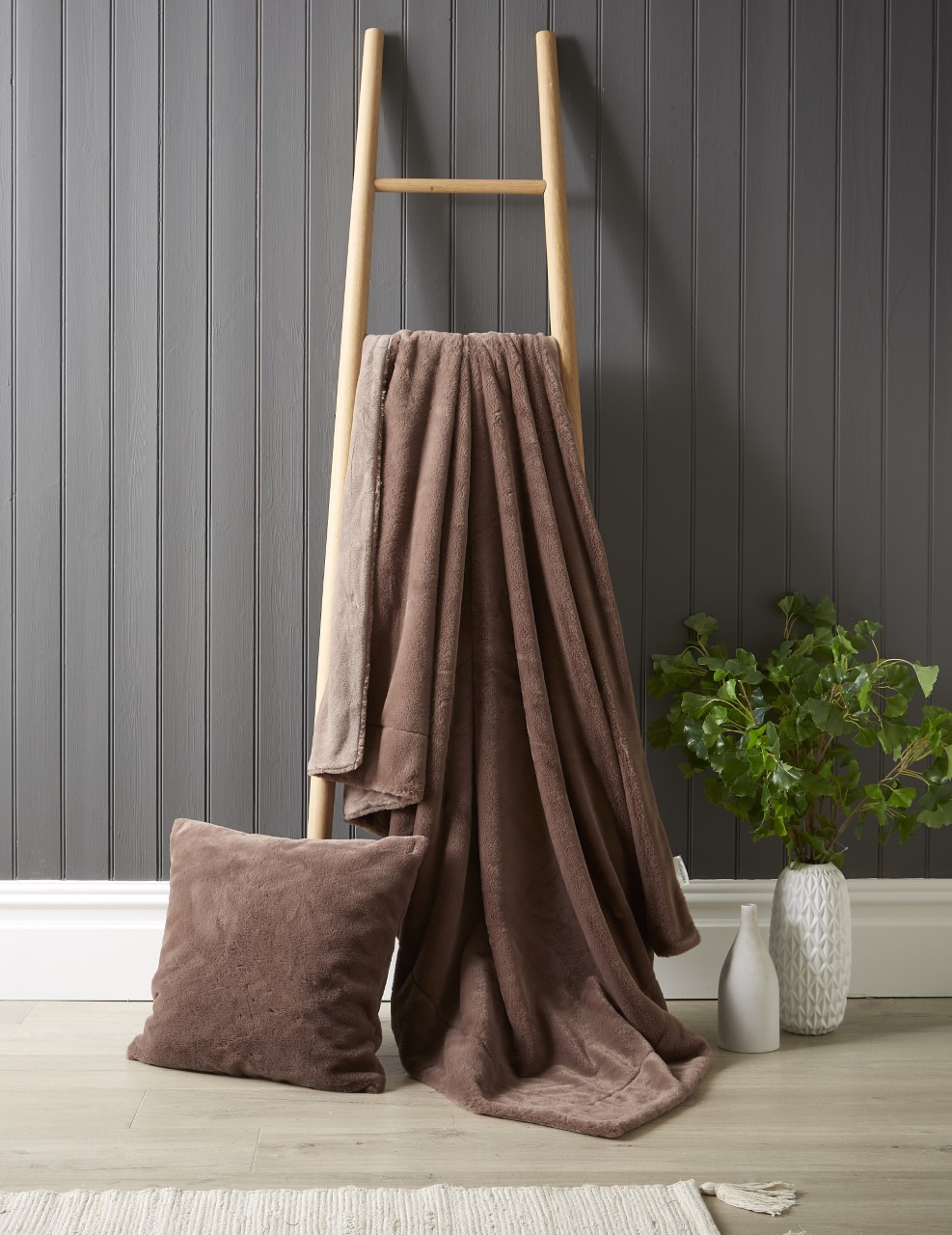 Stylish soft and cosy ultra plush Rabbit faux fur throw with a velvet fleece reverse. The finishing process on this throw produces a silky soft touch and adds depth and texture to the fabric.