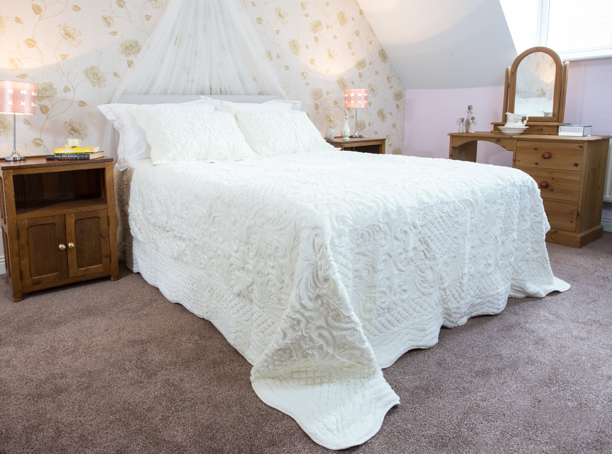 Inspired by French vintage matelasse style, this elegant floral jacquard cotton rich bedspread can be used as an all year-round bed cover or a lovely lightweight throw in the warmer months. The embossed look of a hand-stitched quilt creates a luxurious, timeless and elegant style for your room. Includes matching pillowshams.