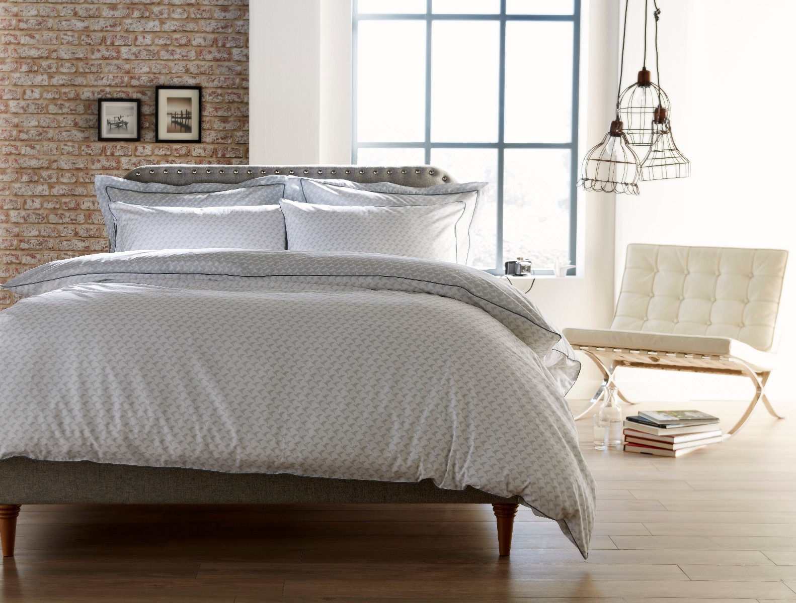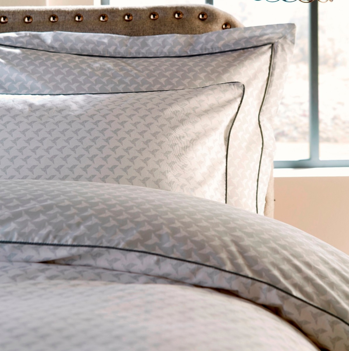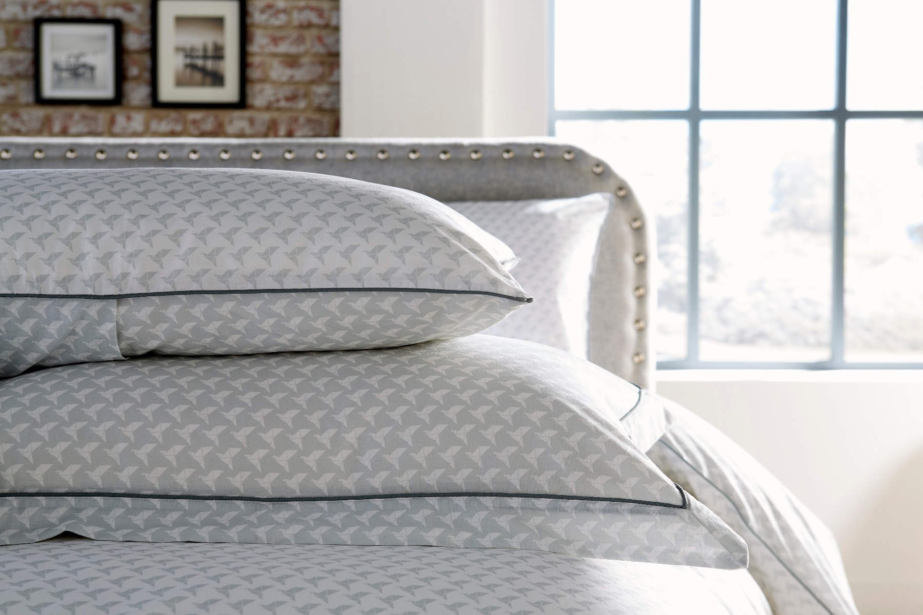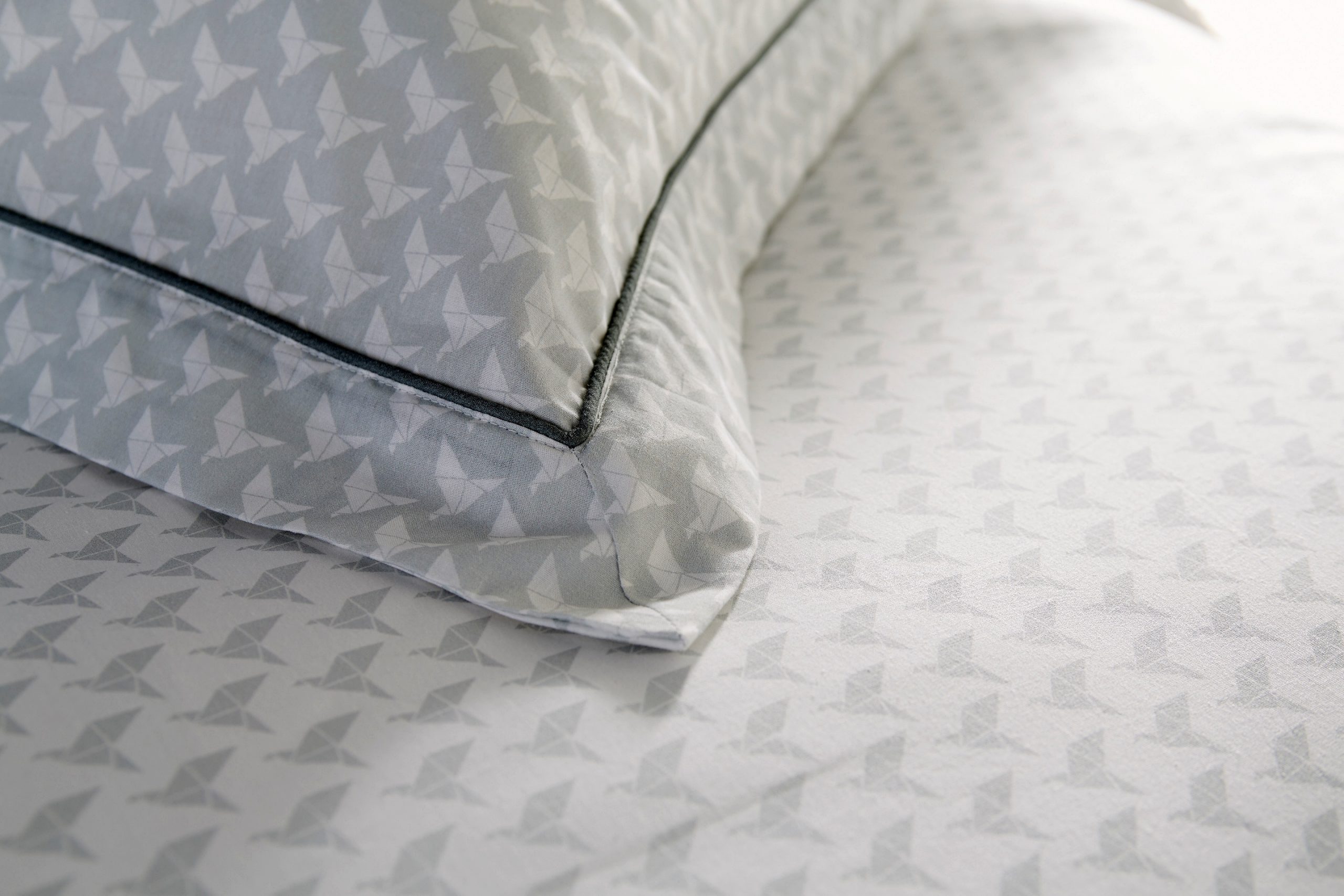 This origami “Paper Birds” grey and white printed bedding is from a contemporary collection of small scale motif designs in a modern colour palette with contrast piping and reverse print details. The 180 thread count 100% cotton percale fabric makes it comfortable as well as stylish.