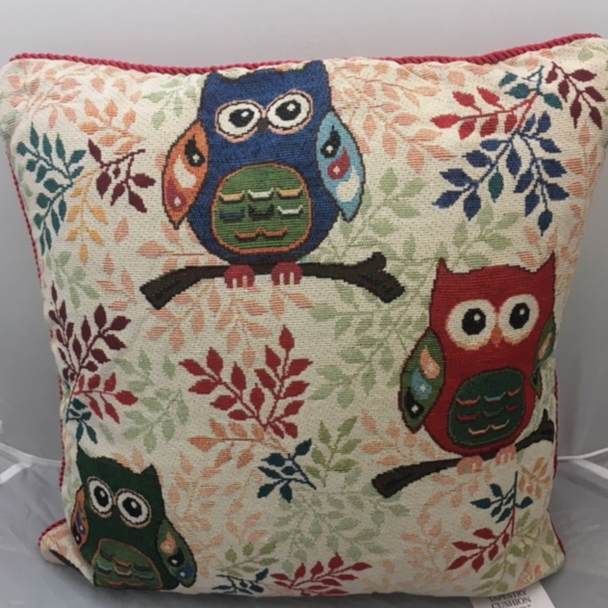 Beautiful tapestry style woven Owl design one side with plain co-ordinating velvet reverse and luxury braided rope trim.¬¨‚Äâ€