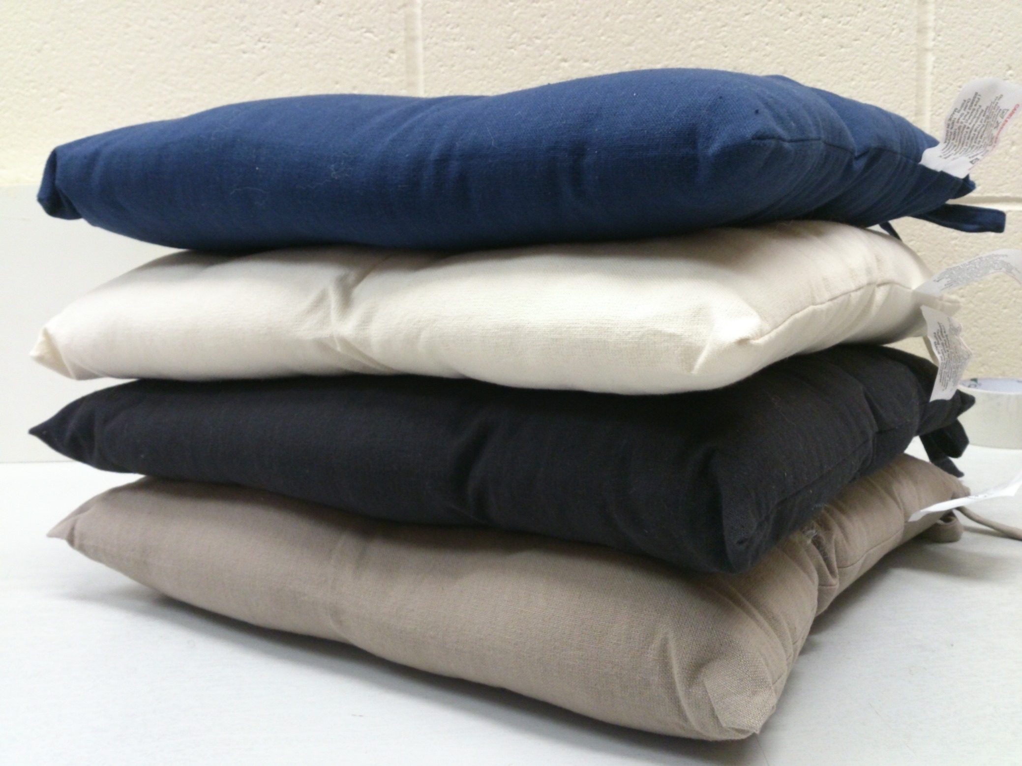 Ideal for kitchen, dining, and garden chairs for additional comfort and decor. These lovely cotton twill plain seat pads have a plump fibre filling for extra comfort, covered buttoned detail and feature twin ties to secure. Pack of 2 seat pads.