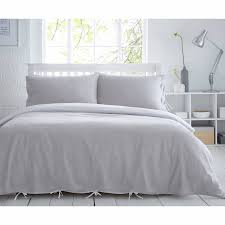 Premium quality reversible pale grey/white linen and cotton mix duvet cover and pillow case set with tie closures. An exceptional sleeping enviroment with beautiful contemporary styling.¬¨‚Äâ€
