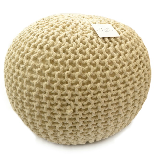 This knitted pouffe is a contemporary twist on a traditional design offering a very stylish & versatile footstool. Available in a range of colours to suit any decor it is sure to be a statement piece in any living area. Conforms to British BS standards. Colours available : Cream, Denim, Red