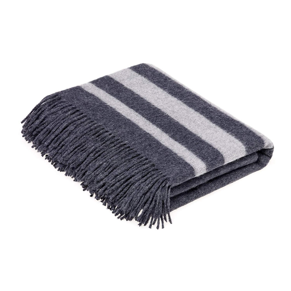Special Offer Bronte By Moon Luxury Merino Lambswool & Angora Seville Stripe Throw – Dark Grey