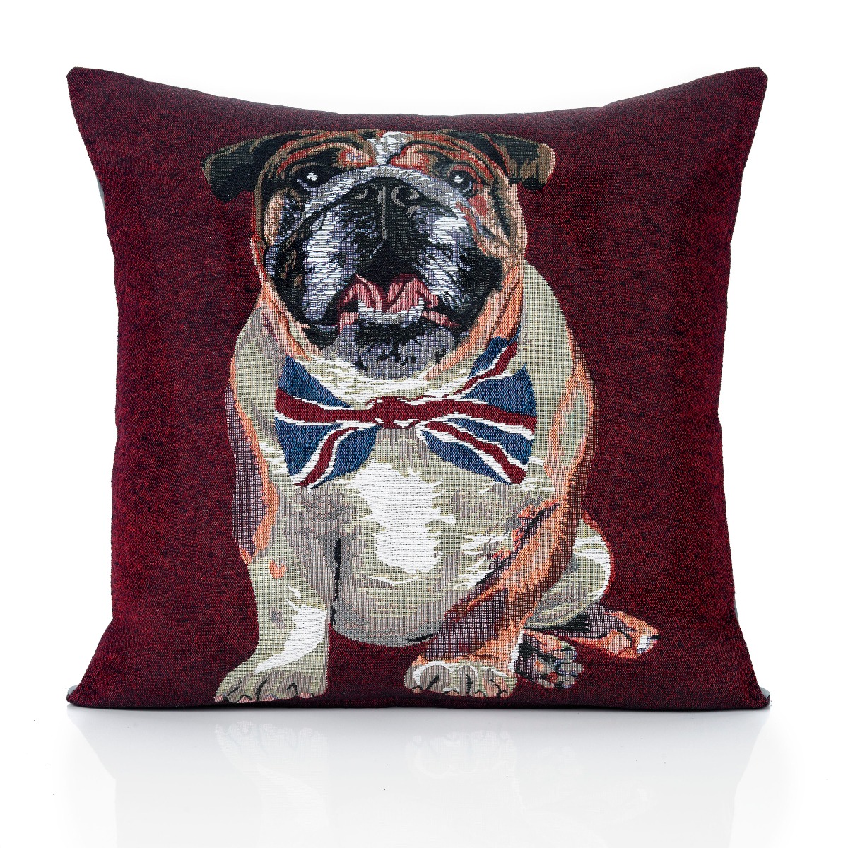 Beautiful tapestry style woven British Bulldog design one side with plain co-ordinating velvet reverse and luxury braided rope trim.¬¨‚Äâ€