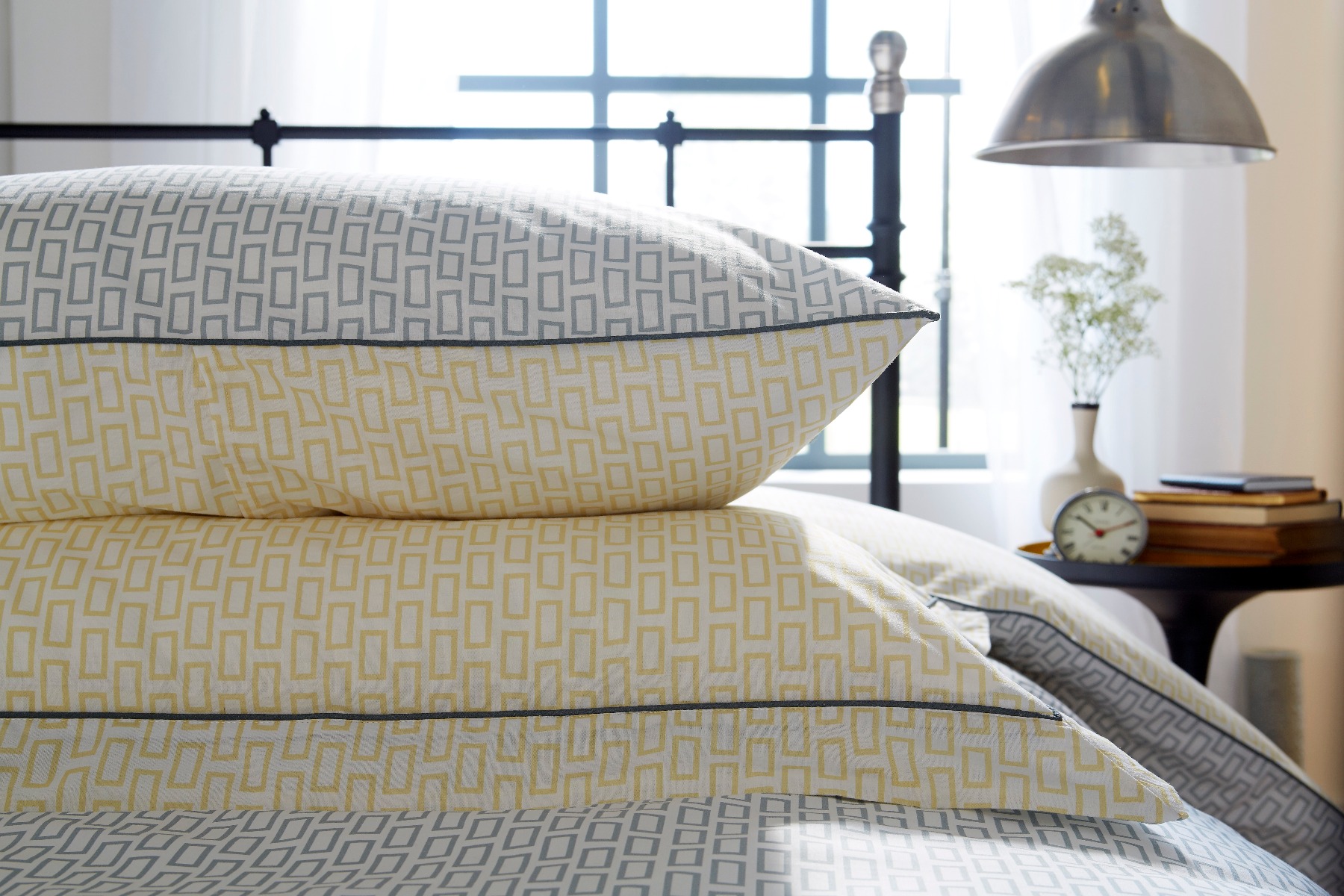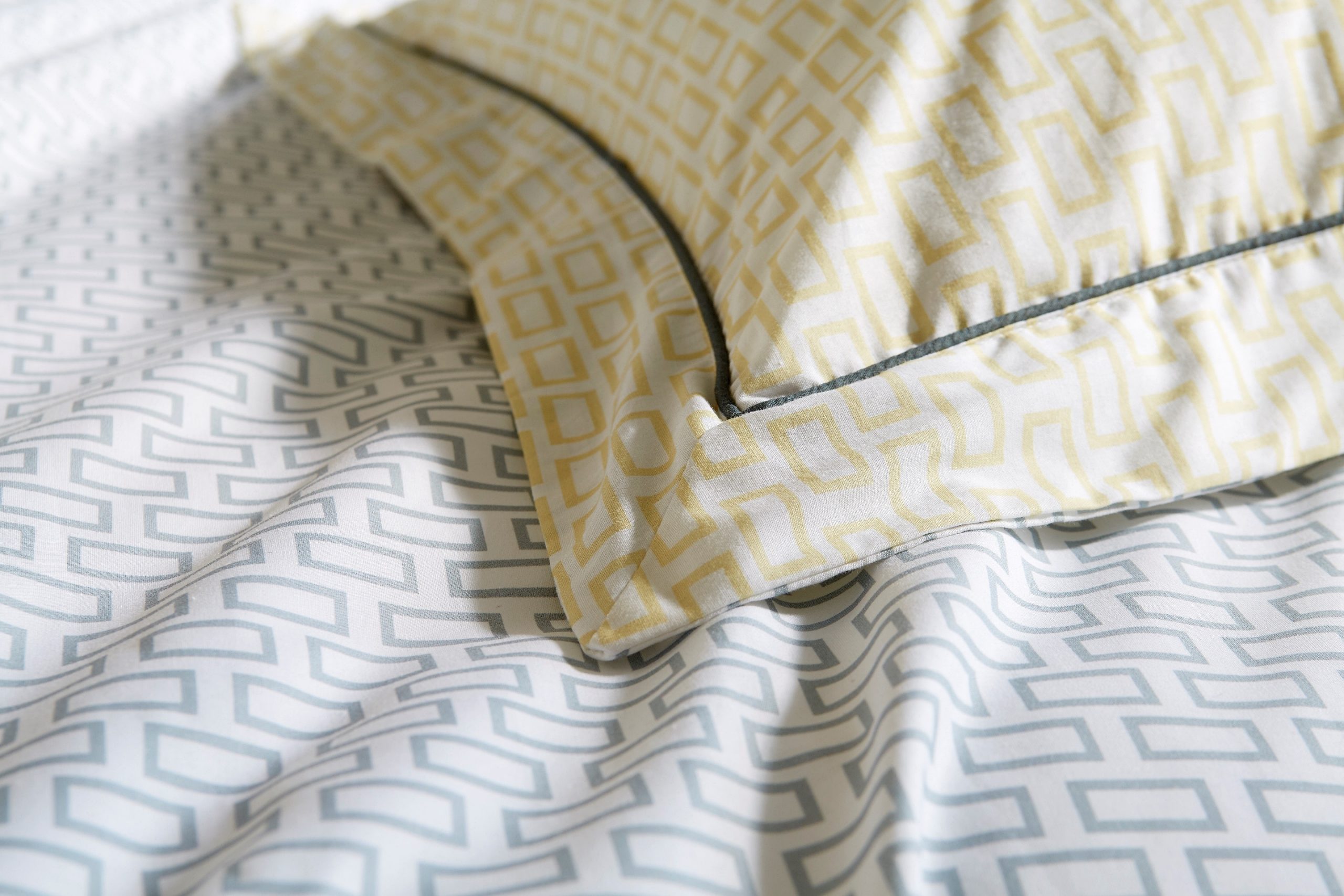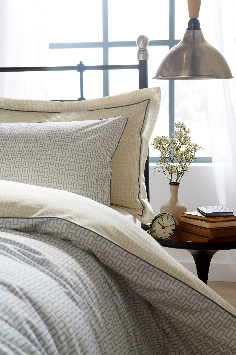 This Zen white, grey and mustard printed bedding is from a contemporary collection of small scale motif designs in a modern colour palette with contrast piping and reverse print details. The 180 thread count 100% cotton percale fabric makes it comfortable as well as stylish.